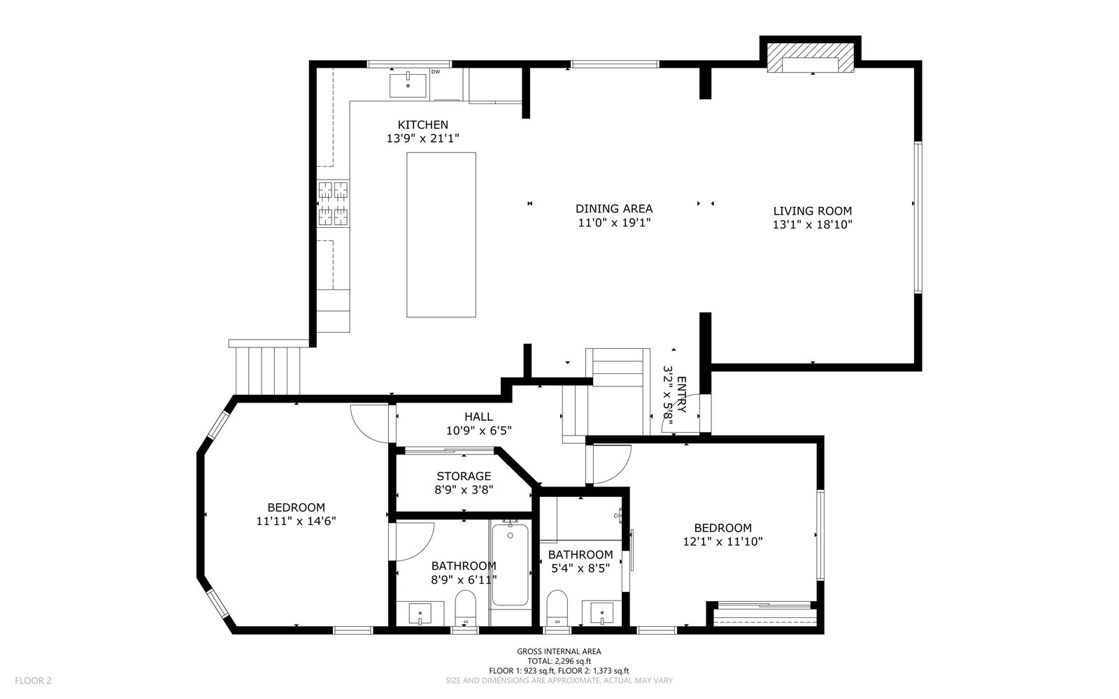 - Total of 5 Bedrooms, 5 Bathrooms, 2 Kitchens totaling 3,055 square feet of living space